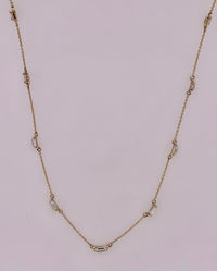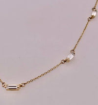 14k yellow gold diamond station necklace. Nine graduated emerald cut diamonds total .80ct. Length: Adjustable 16-18".
