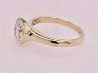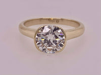 14k yellow gold lab diamond solitaire ring. Half-moon low profile bezel set. Diamond is VS clarity, FG color. Total lab diamond weight: 2.00cts. 3.4gr.