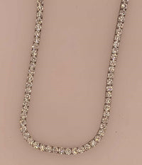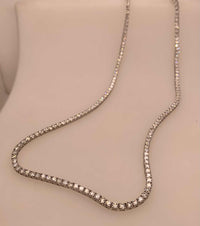 14k white gold LAB diamond tennis necklace. Box clasp with hidden safety closure. Total LAB diamond weight: 10cts. Length: 18".