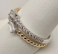 14k white and yellow gold ring. The look of 2 rings stacked together. .47ct.tw. diamonds.