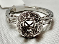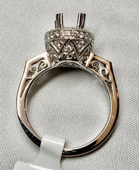 14k white gold semi mount. Holds 3/4-1ct. stone. .72ct.tw. diamonds. Center stone not included.