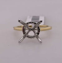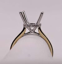 18k two tone gold. Hidden halo. .11ct.tw. diamonds. Holds approximately 2 1/2ct. - 3ct. round stone.