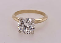 14 karat two-tone four prong setting. 2.01 carat VS clarity GHI color round brilliant cut lab created diamond. List price 3200.