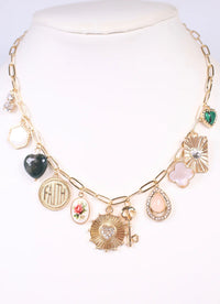 This delightful necklace features a beautiful array of charms for a well put together look to pair well with any outfit. It is the perfect on trend style to complete any ensemble. 16"