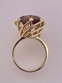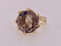 14K yellow gold estate smokey quartz ring. 14mm round smokey quartz. 8 grams.