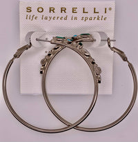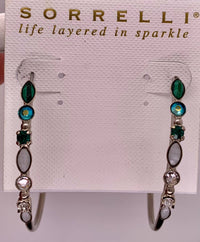 Hoop earrings with a line of assorted crystals and semi-precious stones that will add the perfect hint of sparkle to your look. Antique silver finish. Length: 2". Regular price $85. FINAL SALE!