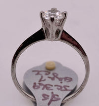 Sterling silver four prong mounting.  .50ct. cubic zirconia.  Size 7.