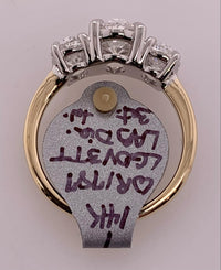 14k two tone oval shape LAB diamond ring. Center stone: 1.50cts. Side stones: .75ct. each. Total LAB diamond weight: 3cts. VS2 clarity, F color. Size 7.